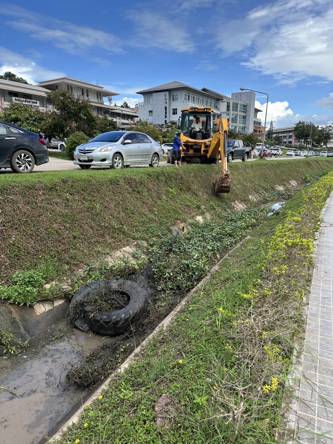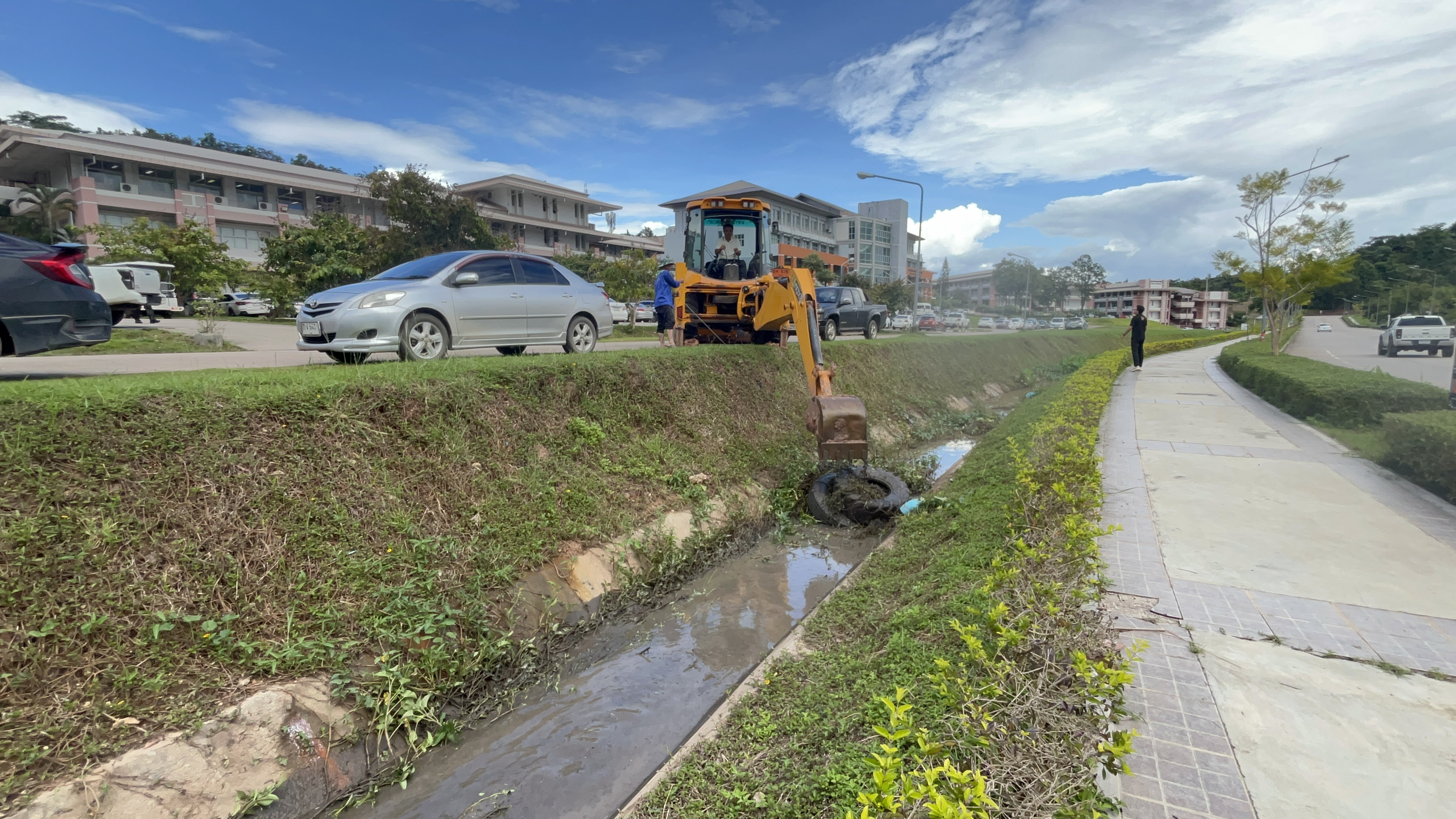 กองอาคารสถานที่ มีความมุ่งมั่นในการดูแลสภาพแวดล้อมและความปลอดภัยภายในมหาวิทยาลัยอย่างต่อเนื่อง โดยการดำเนินงานครั้งนี้มีเป้าหมายเพื่อเพิ่มประสิทธิภาพการระบายน้ำ ลดปัญหาน้ำท่วมขัง และสร้างความมั่นใจในด้านความปลอดภัยและความสะดวกแก่ผู้ใช้พื้นที่รอบอาคารเรียนดังกล่าว