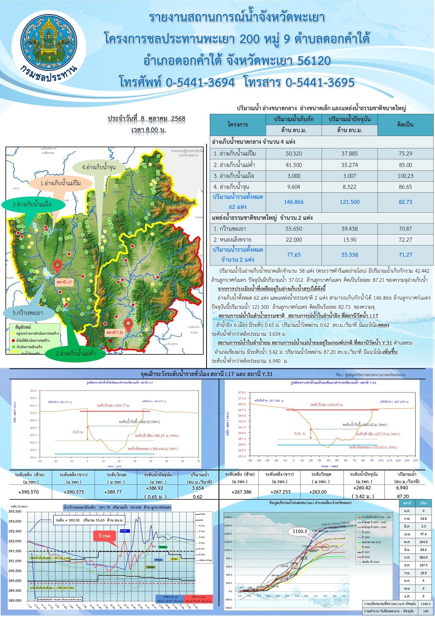 และรายงานสถานการณ์น้ำในกว๊านพะเยาจากโครงการชลประทานพะเยา
