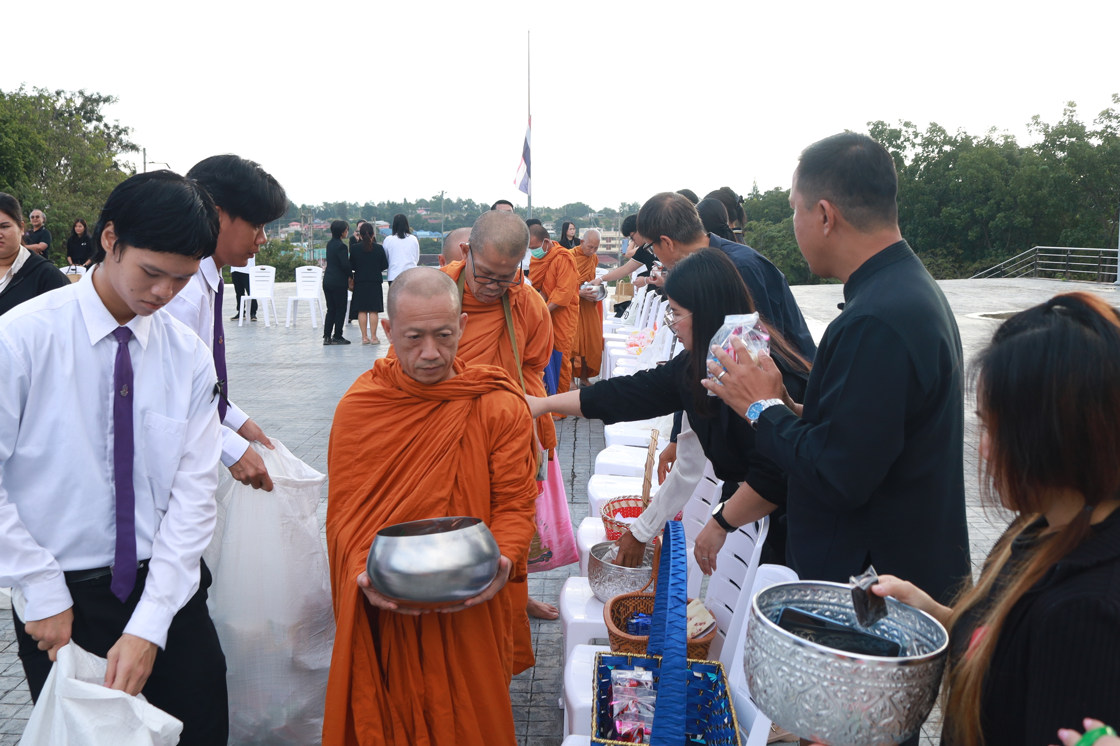 วันศุกร์ที่ 14 พฤศจิกายน พ.ศ.2568 มหาวิทยาลัยพะเยา จัดกิจกรรมตักบาตรถวายเป็นพระราชกุศลแด่ สมเด็จพระนางเจ้าสิริกิติ์ พระบรมราชินีนาถ พระบรมราชชนนีพันปีหลวง โดย รองศาสตราจารย์ ดร.สุภกร พงศบางโพธิ์ อธิการบดีมหาวิทยาลัยพะเยา มอบหมายให้ ดร.วุฒิชัย ไชยรินคำ รองอธิการบดีฝ่ายคุณภาพนิสิต เป็นประธานในพิธี พร้อมด้วยคณะผู้บริหาร บุคลากร ตลอดจนนิสิตมหาวิทยาลัยพะเยาเข้าร่วมอย่างพร้อมเพรียง เพื่อร่วมแสดงความอาลัยและน้อมรำลึกในพระมหากรุณาธิคุณอันหาที่สุดมิได้ ณ ลานบริเวณราชานุสาวรีย์สมเด็จพระนเรศวรมหาราช มหาวิทยาลัยพะเยา