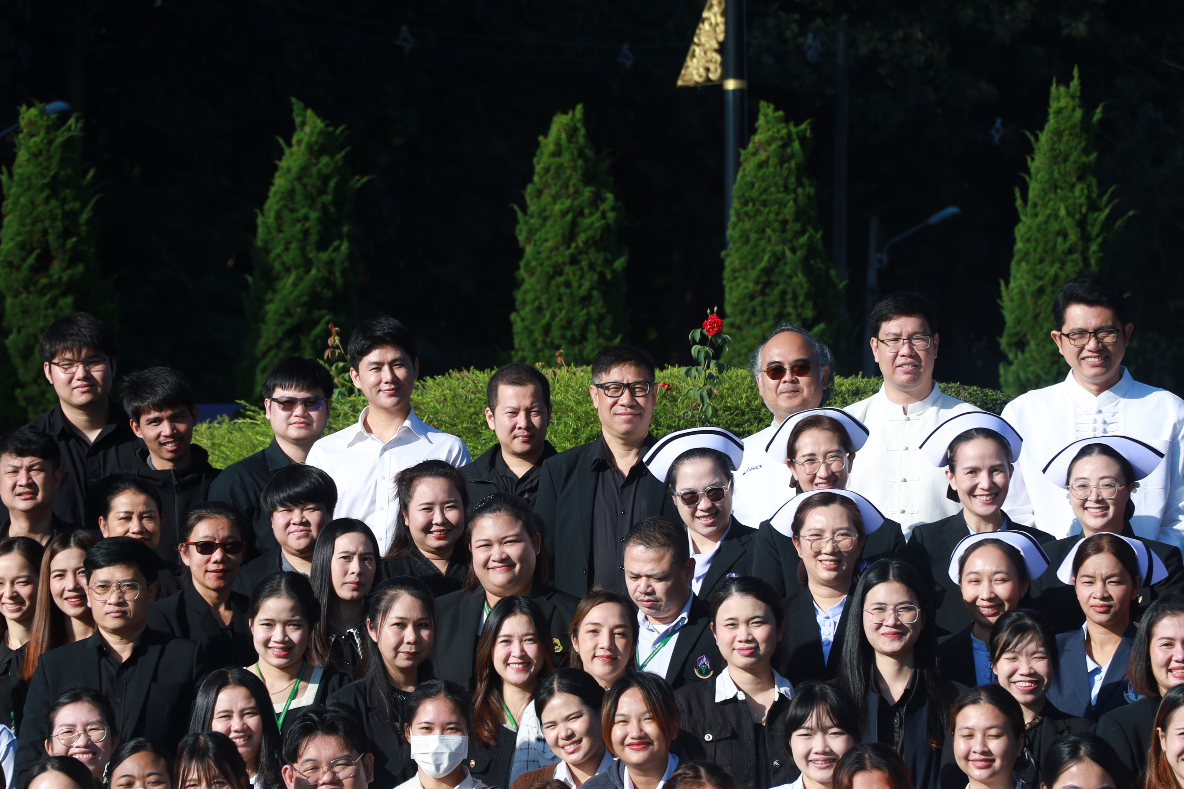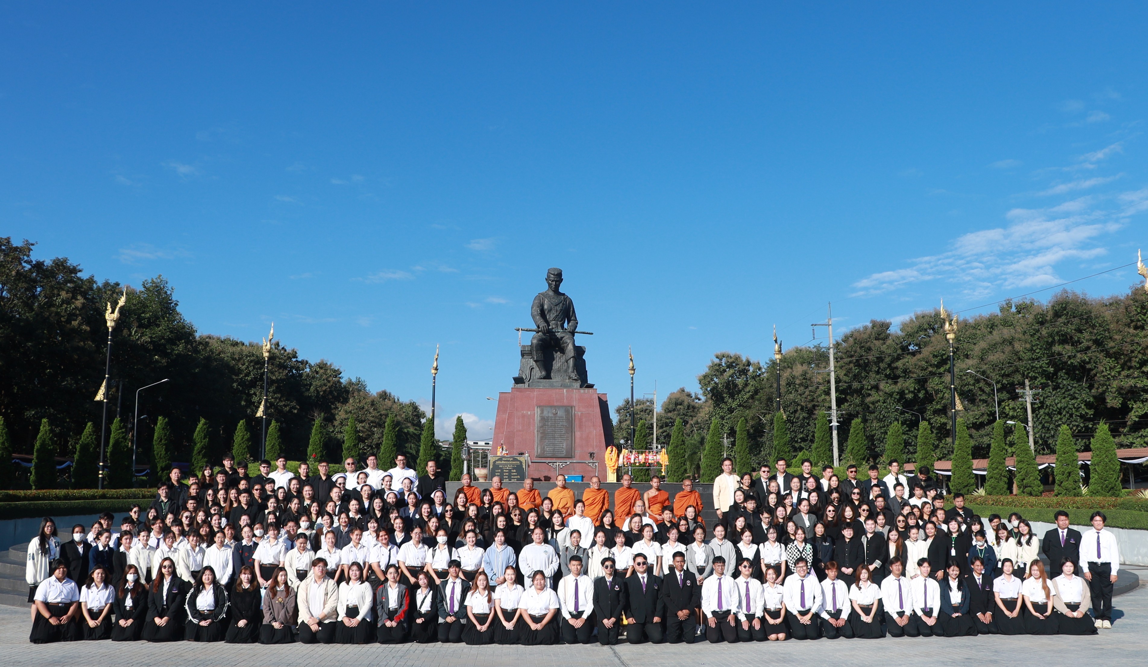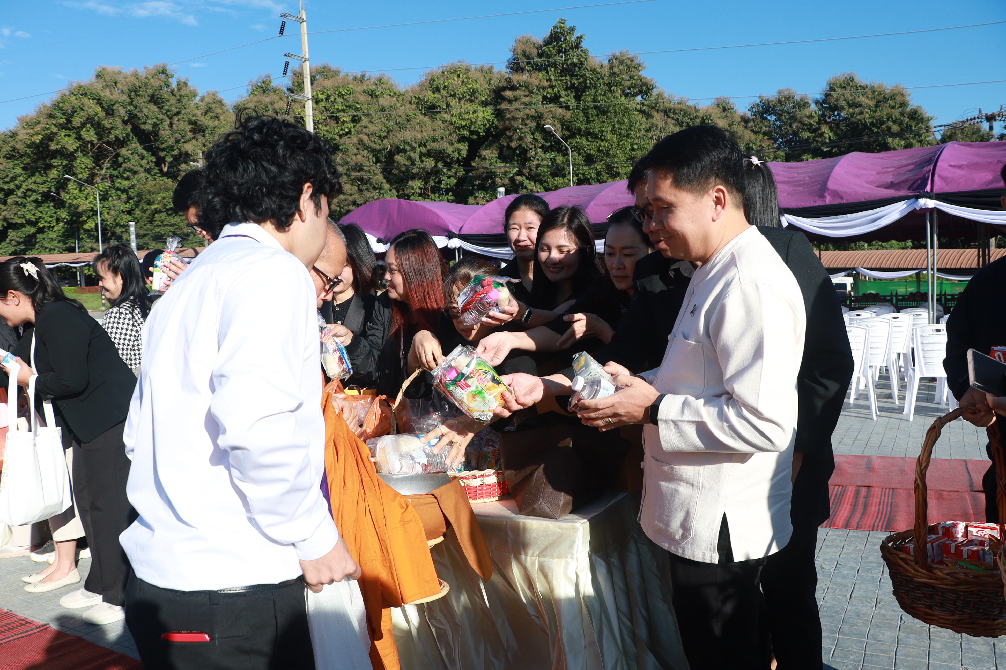 วันศุกร์ที่ 21 พฤศจิกายน พ.ศ. 2568 มหาวิทยาลัยพะเยา จัดกิจกรรมตักบาตรถวายเป็นพระราชกุศลแด่ สมเด็จพระนางเจ้าสิริกิติ์ พระบรมราชินีนาถ พระบรมราชชนนีพันปีหลวง โดย รองศาสตราจารย์ ดร.สุภกร พงศบางโพธิ์ อธิการบดีมหาวิทยาลัยพะเยา มอบหมายให้ ดร.วุฒิชัย ไชยรินคำ รองอธิการบดีฝ่ายคุณภาพนิสิต เป็นประธานในพิธี พร้อมด้วยคณะผู้บริหาร บุคลากร ตลอดจนนิสิตมหาวิทยาลัยพะเยาเข้าร่วมอย่างพร้อมเพรียง เพื่อร่วมแสดงความอาลัยและน้อมรำลึกในพระมหากรุณาธิคุณอันหาที่สุดมิได้ ณ ลานบริเวณราชานุสาวรีย์สมเด็จพระนเรศวรมหาราช มหาวิทยาลัยพะเยา