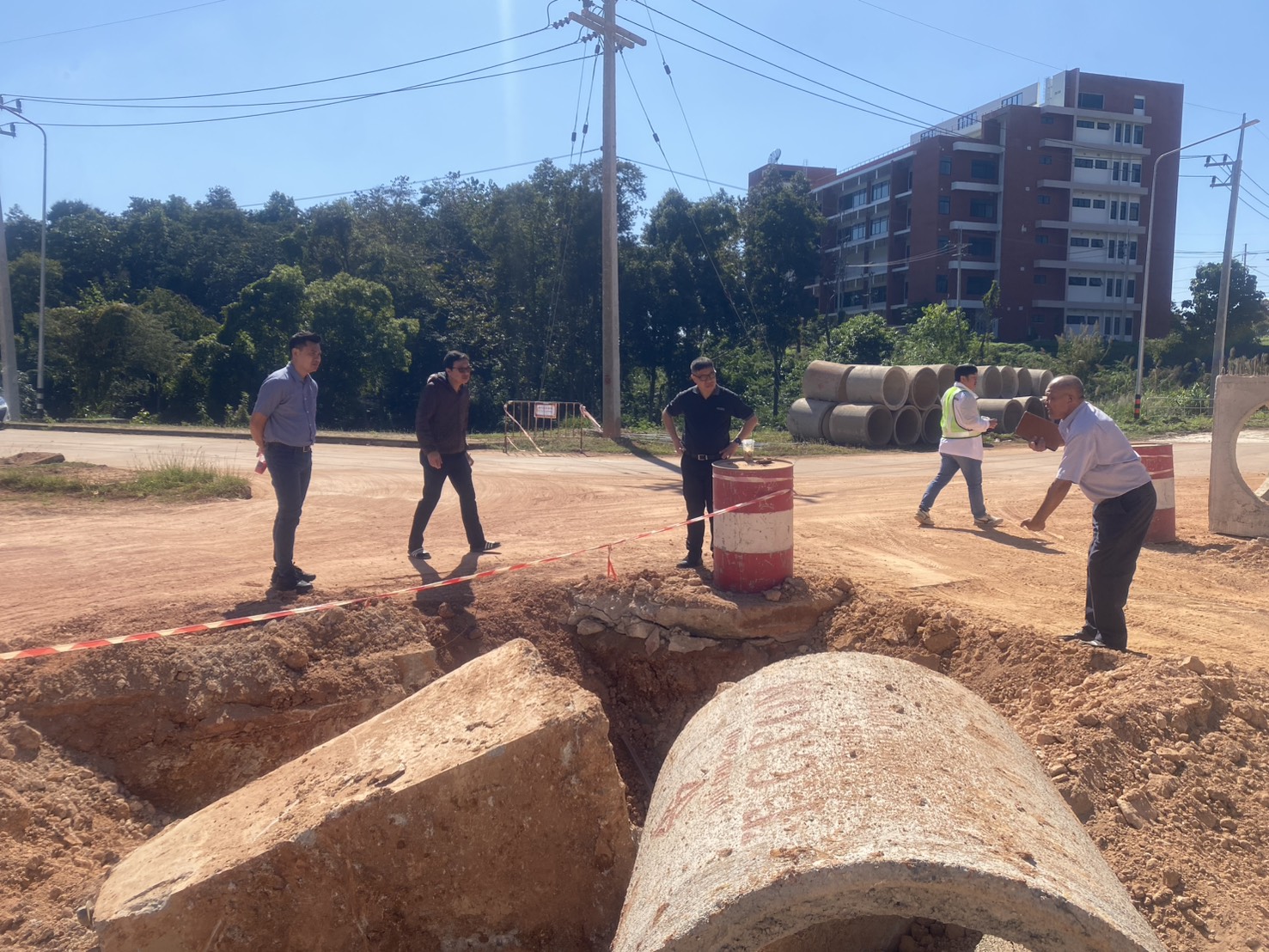 พร้อมกันนี้ นายณัฐวุฒิ สมยาโรน ผู้ช่วยอธิการบดี พร้อมด้วย นายจีระวัฒน์ หมั่นงาน ผู้อำนวยการกองอาคารสถานที่ หัวหน้างานสาธารณูปโภค วิศวกรและผู้รับจ้างงาน ร่วมลงพื้นที่ตรวจสอบงานปรับปรุงทางเข้าผู้ป่วยฉุกเฉินโรงพยาบาลทันตกรรม ม.พะเยา, งานปรับปรุงถนนสายหลักภายในมหาวิทยาลัยพะเยาครอบคลุมพื้นที่ตั้งแต่ กิโลเมตรที่ 2+450 – 2+950 บริเวณ บ้านพักรับรอง – สถานีไฟฟ้า, งานก่อสร้างลานจอดรถพร้อมระบบสาธารณูปโภคโรงพยาบาลม.พะเยา, งานซ่อมแซมอาคารชั้นประถมโรงเรียนสาธิต ม.พะเยา