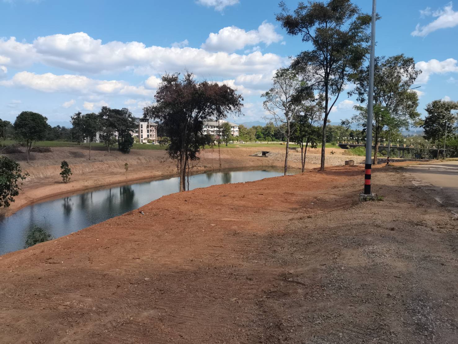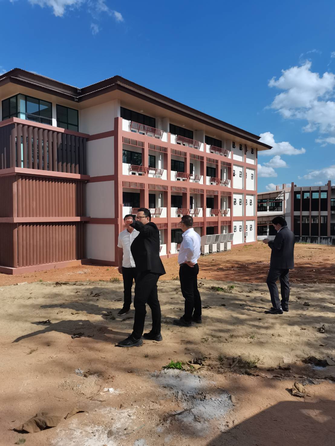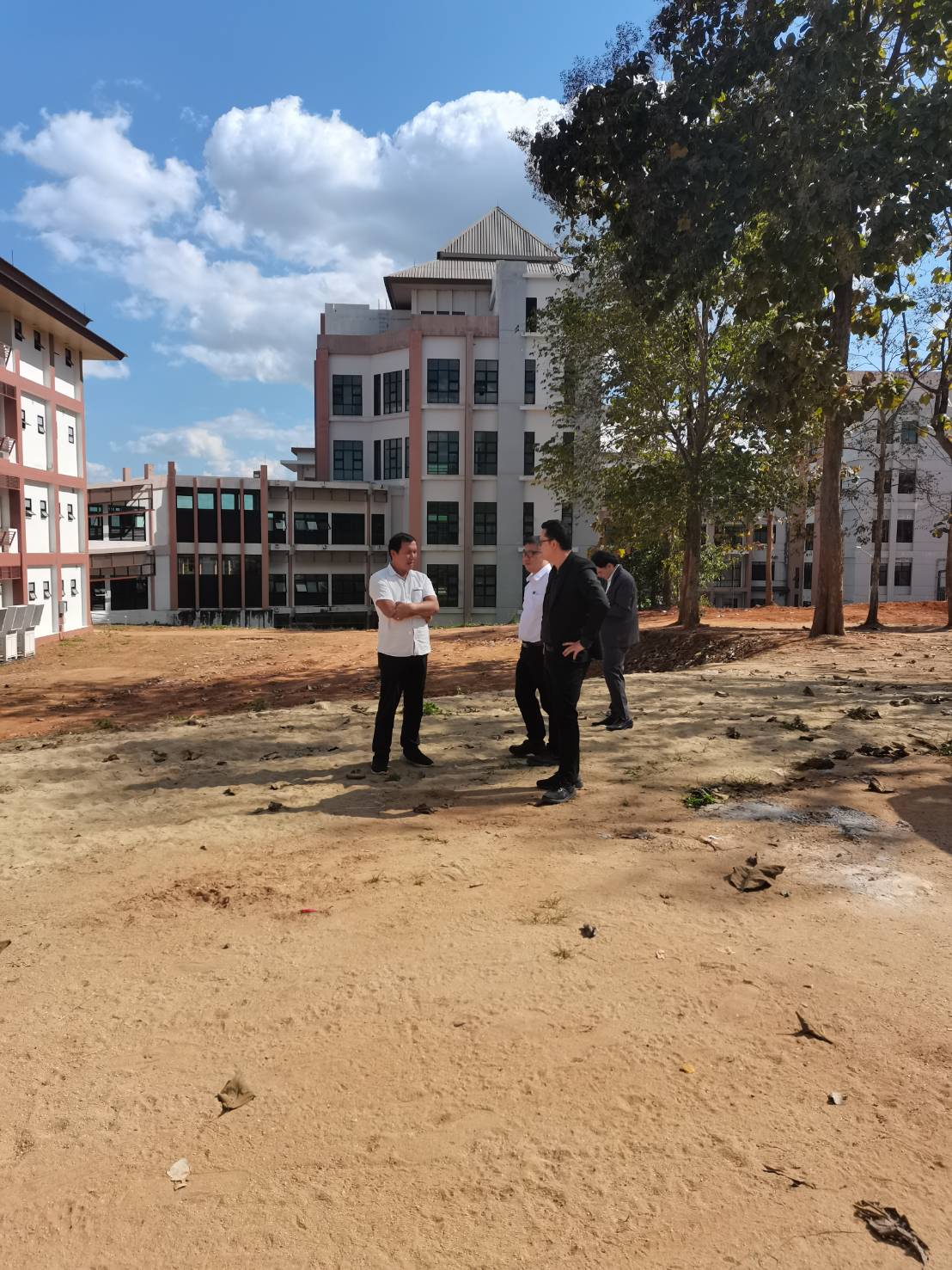 เพื่อร่วมกันตรวจสอบการดำเนินงานของผู้รับจ้างงาน บริเวณด้านหลังอาคารหอพักผู้ป่วย ซึ่งได้พัฒนาเป็นลานจอดรถชั่วคราว พร้อมทั้ง ติดตามความก้าวหน้างานพัฒนาพื้นที่โดยรอบอ่างเก็บน้ำโรงพยาบาลมหาวิทยาลัยพะเยา ซึ่งตั้งอยู่ระหว่างอาคารผู้ป่วยนอกและหอพักบุคลากรทางการแพทย์ ตามโครงการงานจ้างเครื่องจักรกลปฏิบัติงานปรับปรุงภูมิทัศน์บริเวณด้านหลังสนามกีฬา