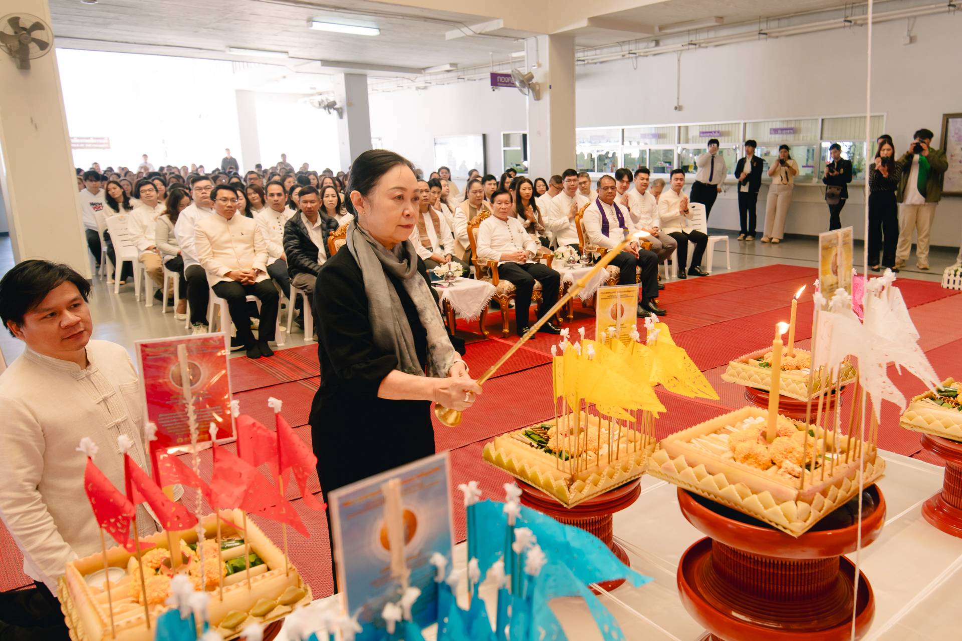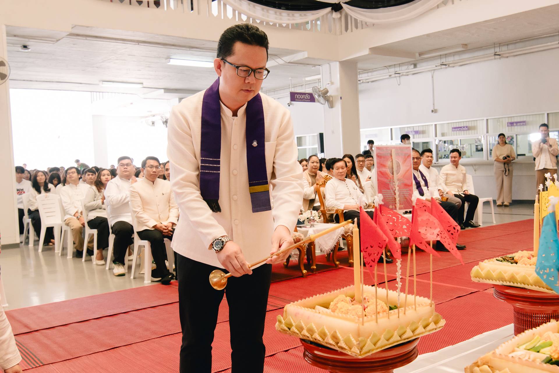 ในการนี้ กองอาคารสถานที่ นำโดย ผู้ช่วยศาสตราจารย์สุวิทย์ ปัญญาวงศ์ รองอธิการบดีฝ่ายสิ่งแวดล้อมและภูมิทัศน์ พร้อมด้วย นายณัฐวุฒิ สมยาโรน ผู้ช่วยอธิการบดี, นายจีระวัฒน์ หมั่นงาน ผู้อำนวยการกองอาคารสถานที่ หัวหน้างาน และบุคลากรในสังกัด เข้าร่วมพิธีอย่างพร้อมเพรียง