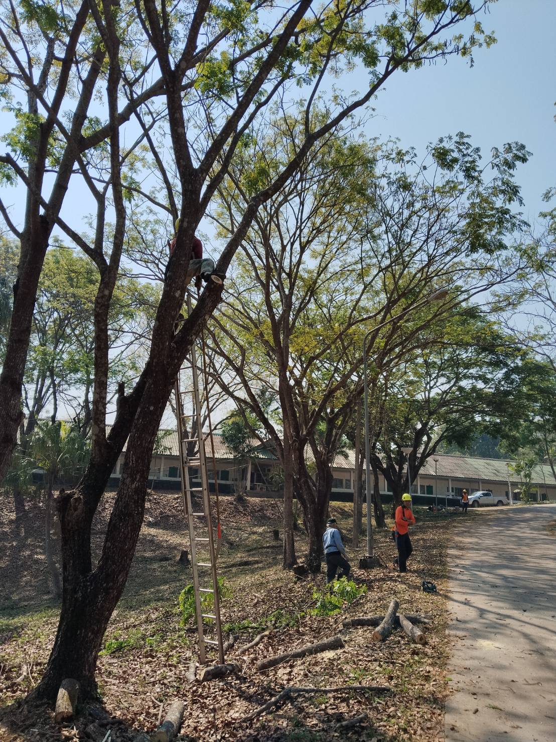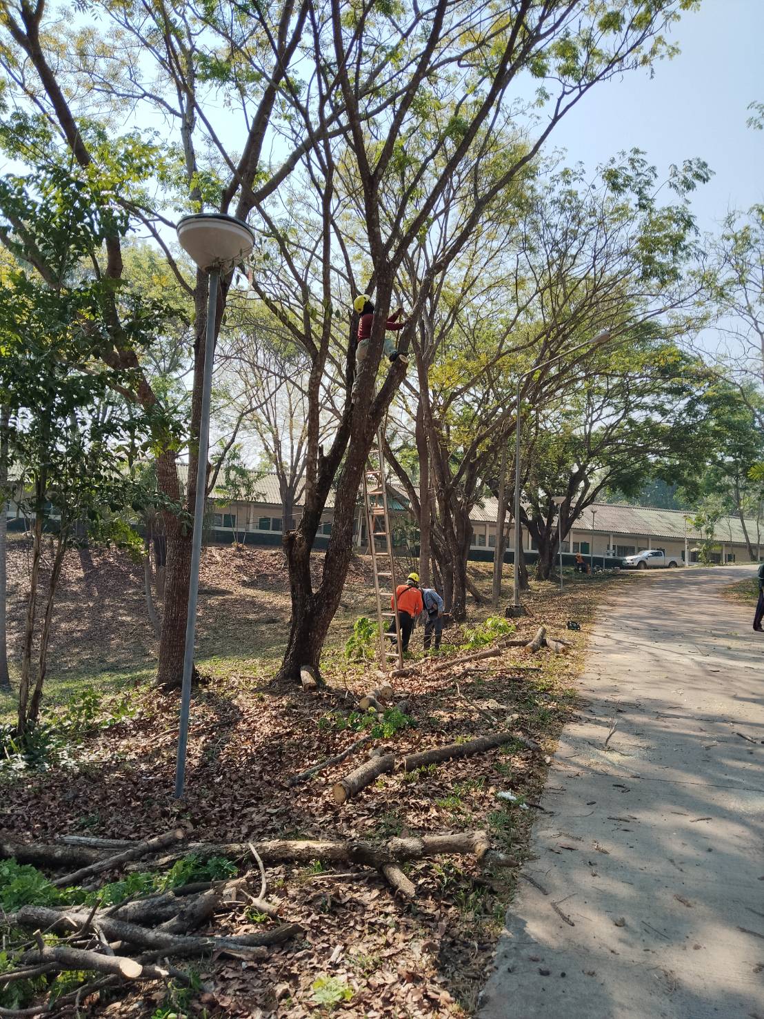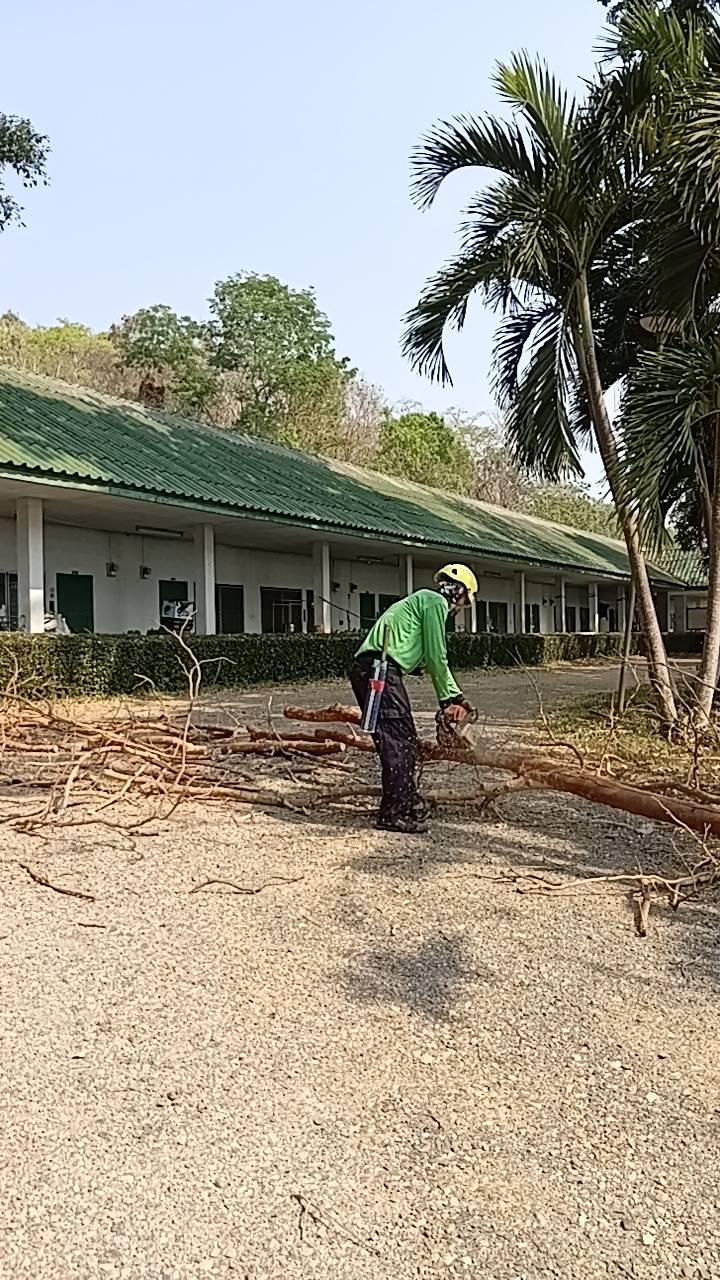 กองอาคารสถานที่ งานสวนและภูมิทัศน์ ดำเนินการเร่งตัดแต่งกิ่งไม้ ต้นไม้ กำจัดเศษใบไม้ กิ่งไม้แห้งสะสม พร้อมรื้อถอนต้นไม้ยืนต้นตาย ในพื้นที่ต่าง ๆ ทั่วทั้งมหาวิทยาลัย อย่างต่อเนื่อง เพื่อเตรียมความพร้อมรับสถานการณ์ลมแรงและพายุฤดูร้อนที่อาจเกิดขึ้นในช่วงนี้