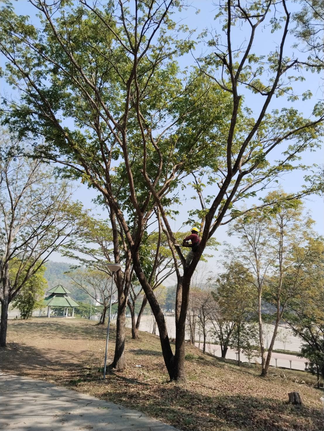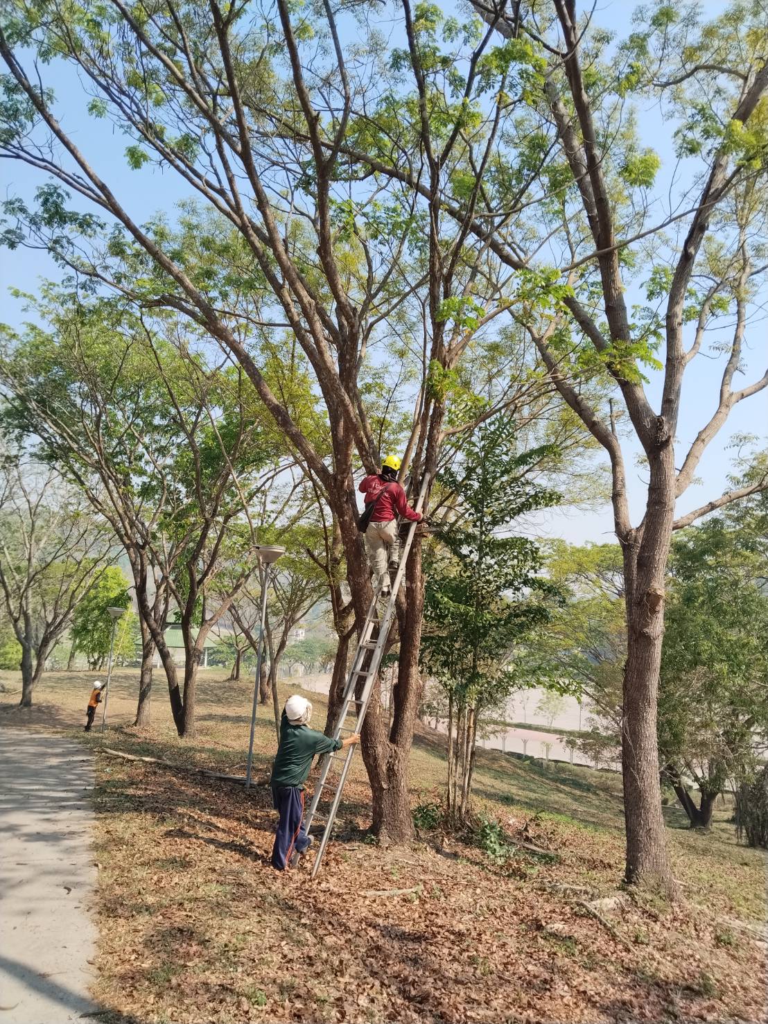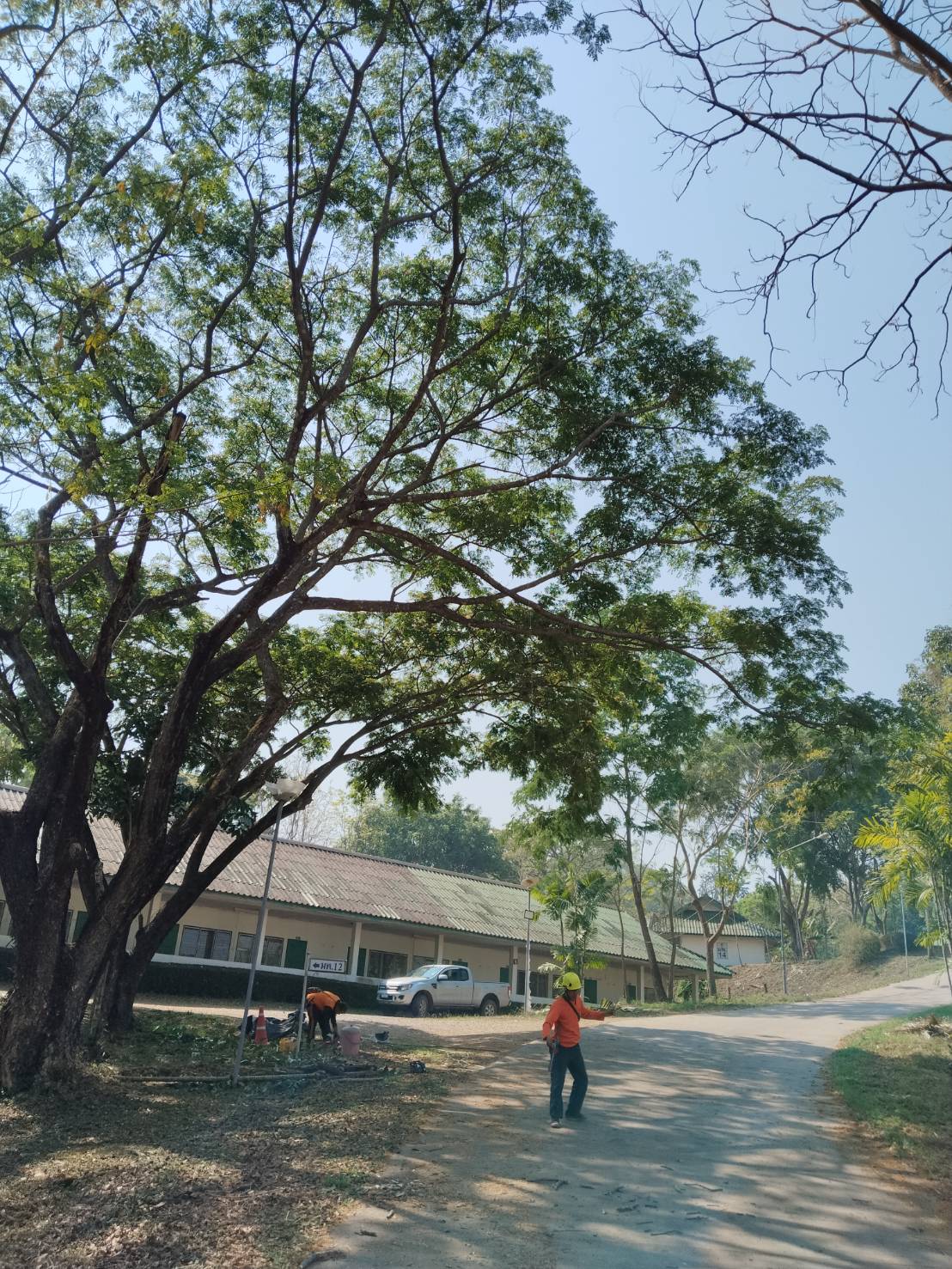 กองอาคารสถานที่ งานสวนและภูมิทัศน์ ดำเนินการเร่งตัดแต่งกิ่งไม้ ต้นไม้ กำจัดเศษใบไม้ กิ่งไม้แห้งสะสม พร้อมรื้อถอนต้นไม้ยืนต้นตาย ในพื้นที่ต่าง ๆ ทั่วทั้งมหาวิทยาลัย อย่างต่อเนื่อง เพื่อเตรียมความพร้อมรับสถานการณ์ลมแรงและพายุฤดูร้อนที่อาจเกิดขึ้นในช่วงนี้