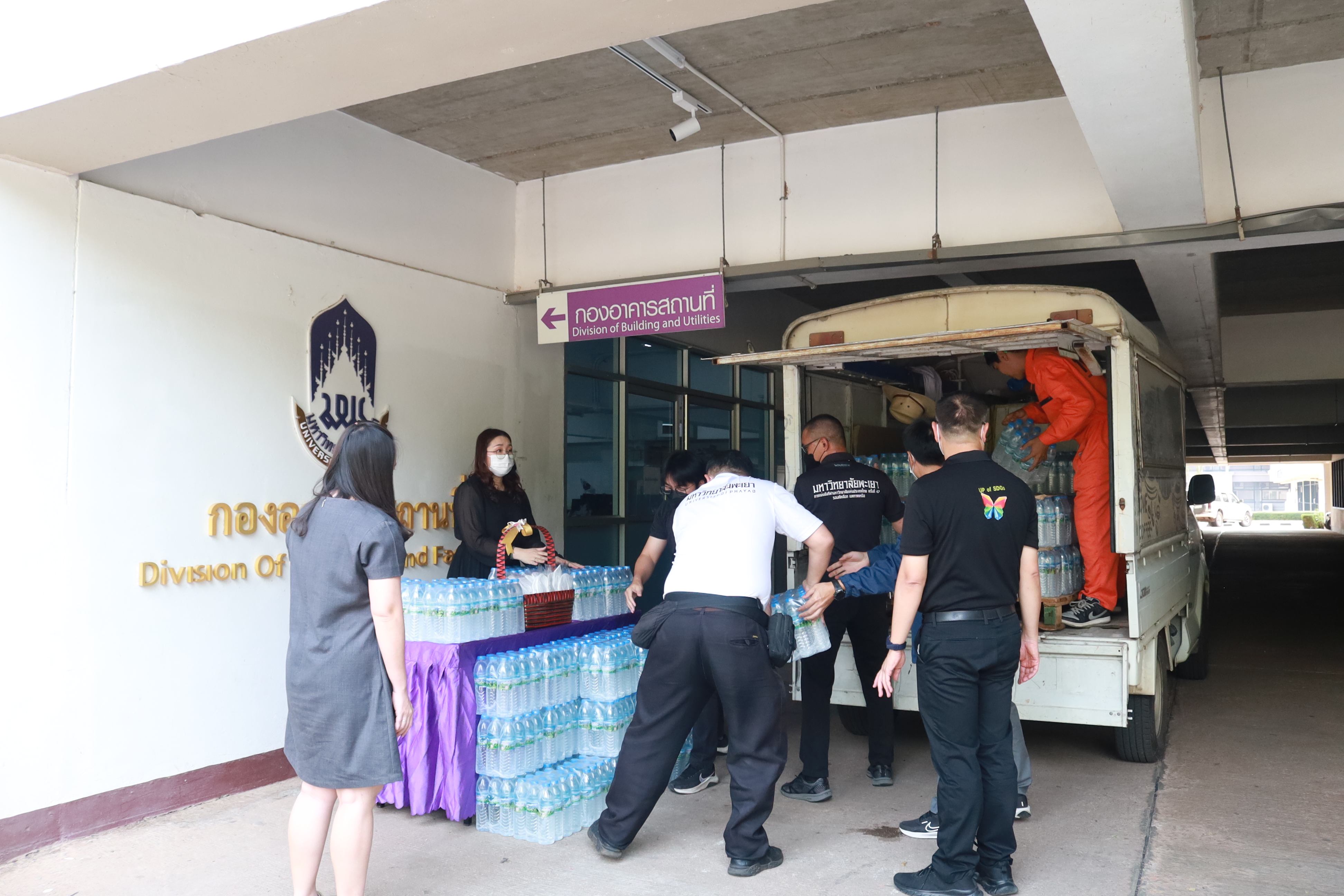 โดยได้รับมอบน้ำดื่ม จำนวน 100 แพ็ค และหน้ากากอนามัย จำนวน 100 ชิ้น เพื่อใช้ในการปฏิบัติงานภาคสนามและเสริมสร้างความปลอดภัยด้านสุขภาพให้แก่เจ้าหน้าที่ผู้ปฏิบัติงานในพื้นที่เสี่ยง โดย นายจีระวัฒน์ หมั่นงาน ผู้อำนวยการกองอาคารสถานที่ พร้อมด้วยนายชลาธร ทวีกุล หัวหน้างานความปลอดภัย กองอาคารสถานที่ เป็นผู้แทนรับมอบ เพื่อส่งต่อให้แก่เจ้าหน้าที่ผู้ปฏิบัติหน้าที่ดับไฟป่าในพื้นที่ต่อไป
